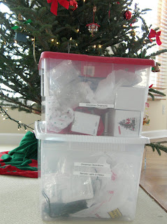 | Bringing out the Christmas decorations. |